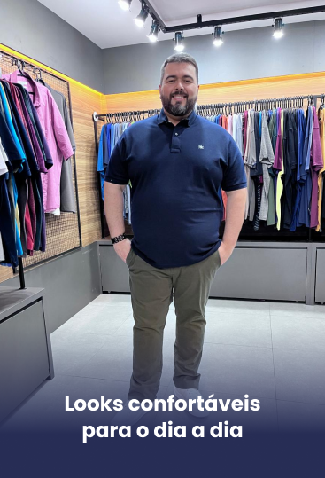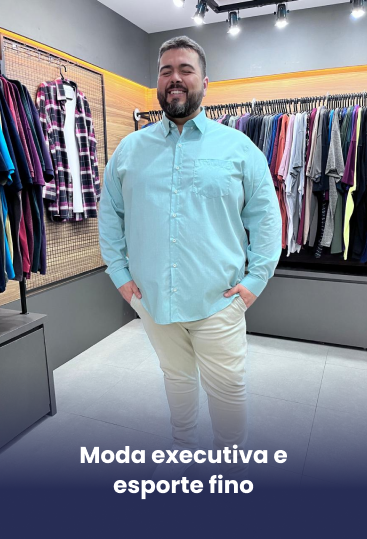 Oferecemos estilo, conforto e caimento perfeito para homens de atitude como você! Trabalhamos com tamanhos do 48 ao 84 e peças exclusivas que atendem desde o dia a dia até ocasiões profissionais, sempre valorizando o seu bem-estar e autoestima.
